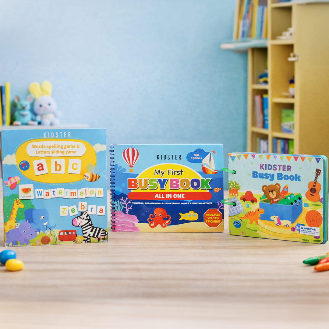 The Brain Development Combo is designed to support early cognitive growth through hands-on, screen-free learning. This 3-book set combines interactive activities, visual recognition, and memory-building play to help children learn naturally through exploration.